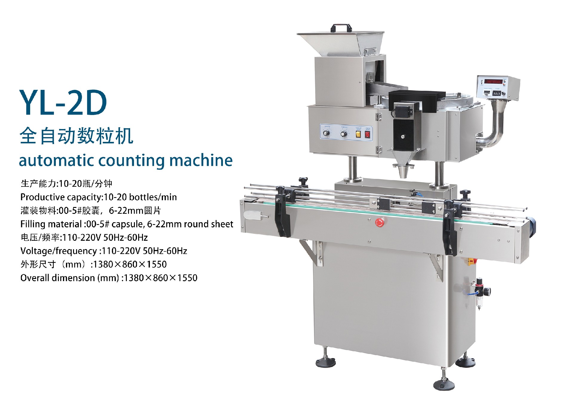 灌裝物料 Filling material range | 5#~00#膠囊、軟膠囊、?6~16mm圓片、異形片、糖衣片、?6~12mm丸劑。 5#-00#capsule、softgel、?6~16mmRound tablet、 Abnormal shape、Icing tablets、?6~12mmpill |